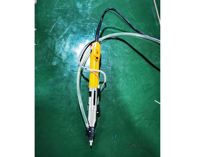 6.電批達(dá)到預(yù)設(shè)的扭力自動(dòng)停止后提起電批到安全高度松開(kāi),進(jìn)行第二次供料螺絲在夾頭處抱住,進(jìn)行鎖第二粒螺絲時(shí)對(duì)準(zhǔn)孔位下壓扭力到電批停止,提起手持電批到安全高度后松開(kāi)觸發(fā)吹螺絲;